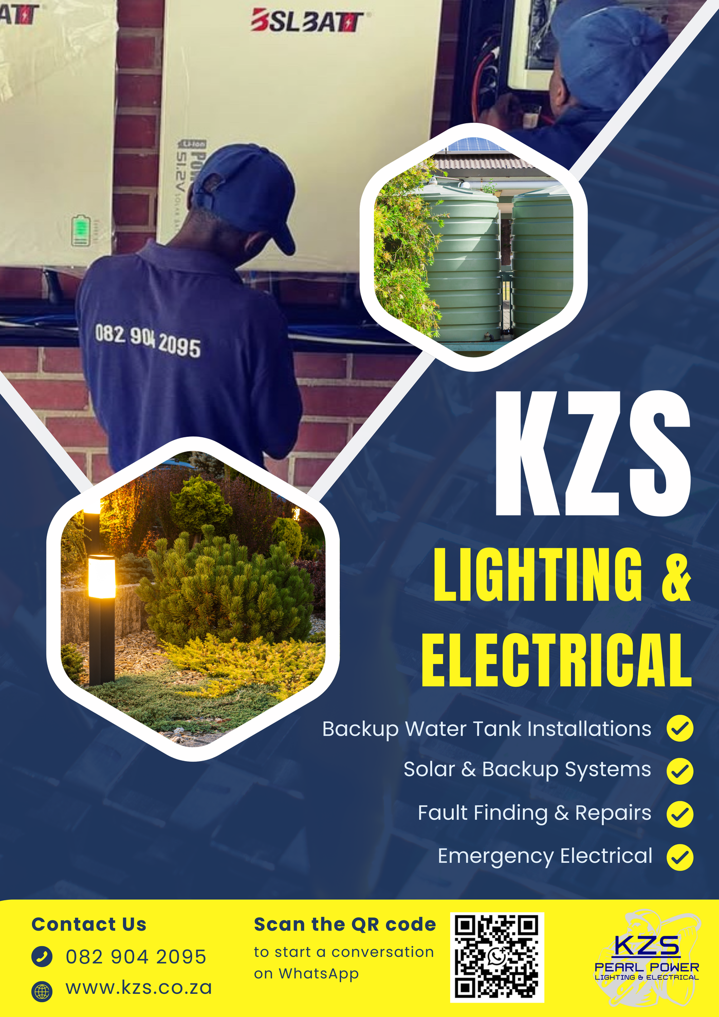 Choose KZS Lighting & Electrical to power and protect your home, office, or commercial property in Sandton, Johannesburg North, Norwood, and Linksfield with efficiency, safety, and integrity.